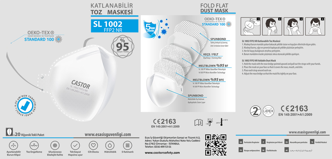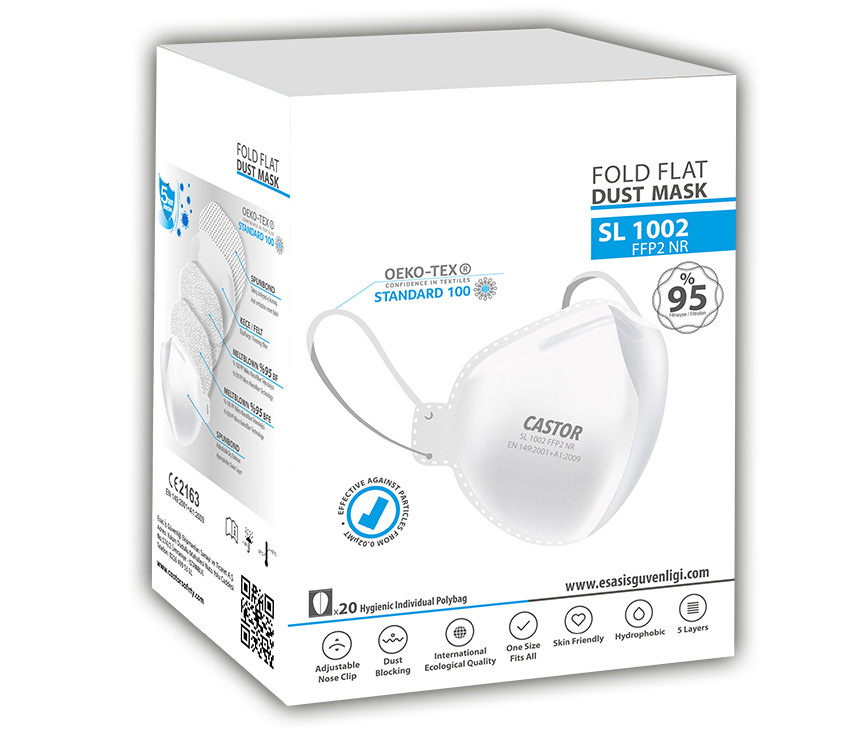 Virüs ve partiküllere karşı %95 koruma sağlar. EN 149+A1 standartlı maskeler yüze sıkıca oturmayı sağlamak ve yüz ile maske arasında sızdırmazlığı oluşturmak üzere tasarlanır. Havadaki tehlikelere karşı kullanıcının maruziyetini azaltmak üzere tasarlanmıştır.